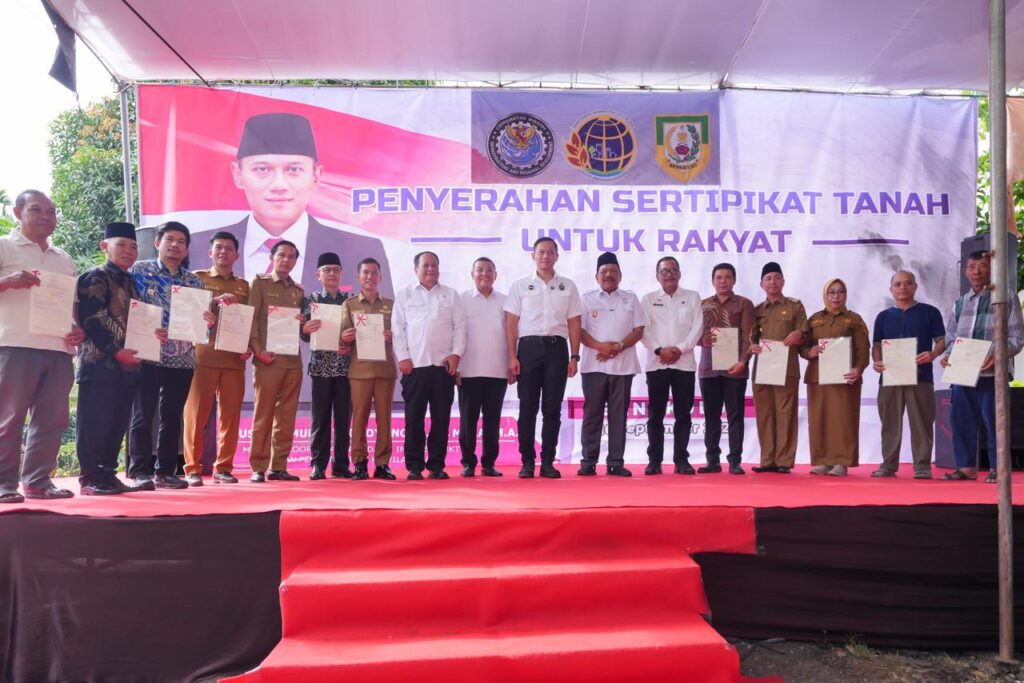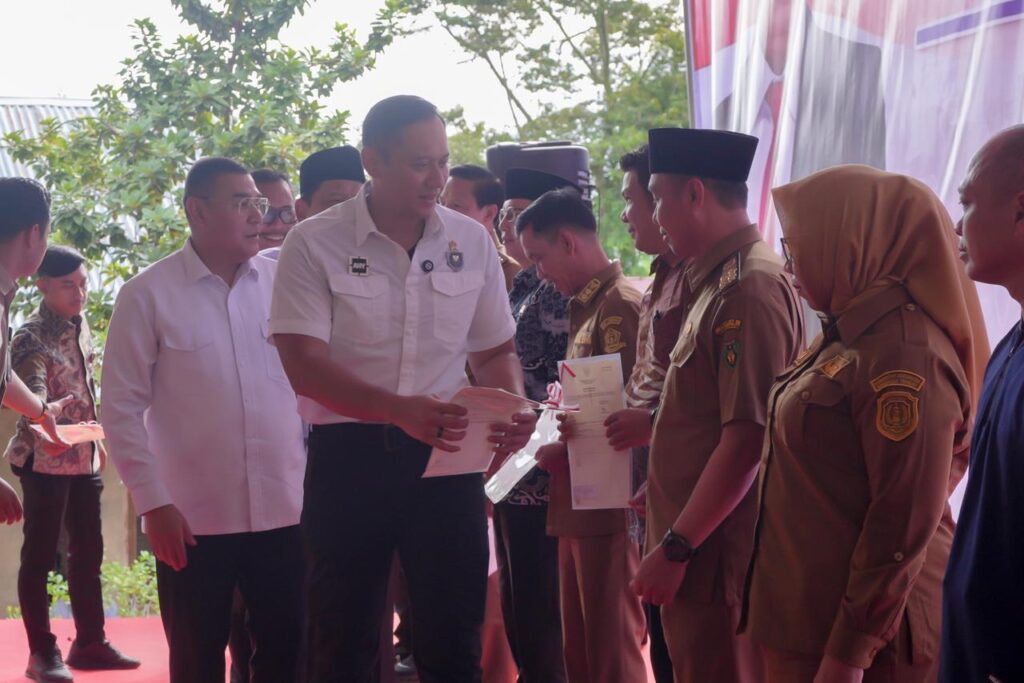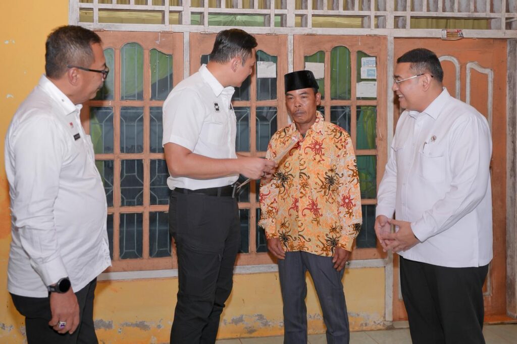 Bengkulu – Wakil Menteri Agraria dan Tata Ruang/Wakil Kepala Badan Pertanahan Nasional (Wamen ATR/Waka BPN), Ossy Dermawan, bersama Menteri Koordinator Bidang Infrastruktur dan Pembangunan Kewilayahan (Menko IPK), Agus Harimurti Yudhoyono (AHY) menyerahkan 184 sertipikat di wilayah kerja Kantor Wilayah (Kanwil) BPN Provinsi Bengkulu. Penyerahan Sertipikat Elektronik ini dilakukan secara door to door di Kelurahan Bumi Ayu, Kecamatan Selebar, Kota Bengkulu, Selasa (16/09/2025).