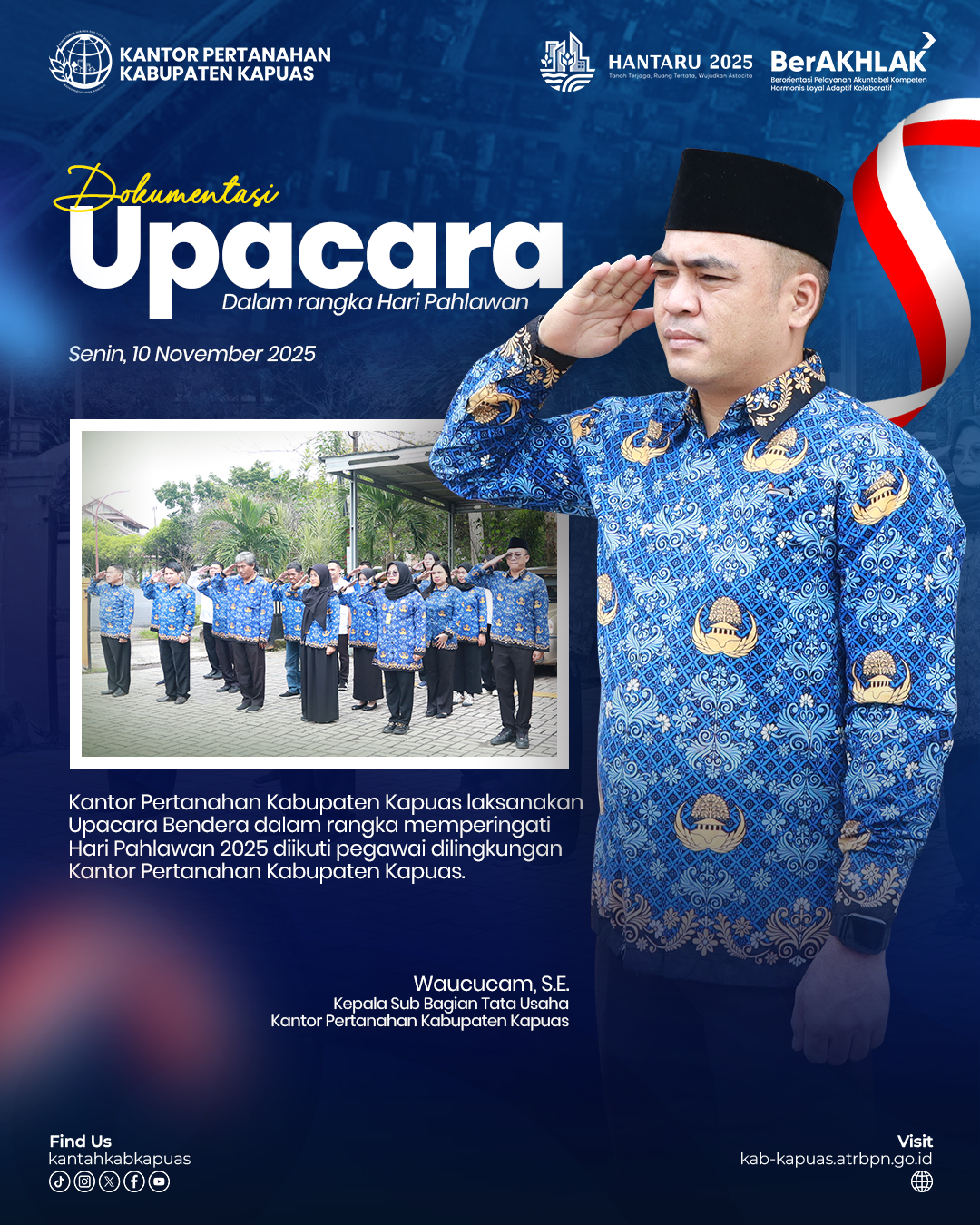 Kantor Pertanahan Kabupaten Kapuas Laksanakan Upacara dalam rangka memperingati Hari Pahlawan 10 November 2025.