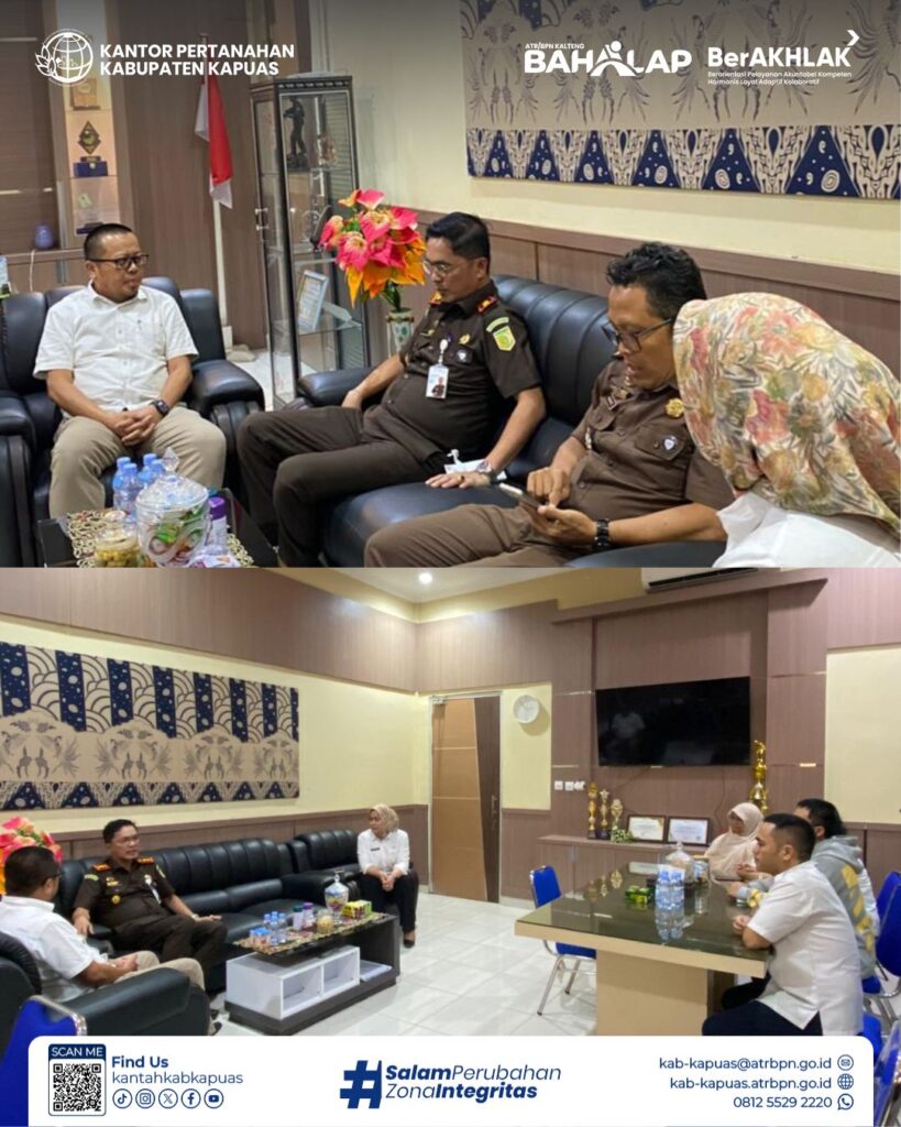 Kepala Kantor Pertanahan Kabupaten Kapuas Bayu Aswandono, S.Si.,M.Sc. beserta Jajaran terima kunjungan dari Kepala Kejaksaan Negeri Kapuas Rade Satya Parsaroan, S.H.,M.H. pada Rabu (07/01/26).
