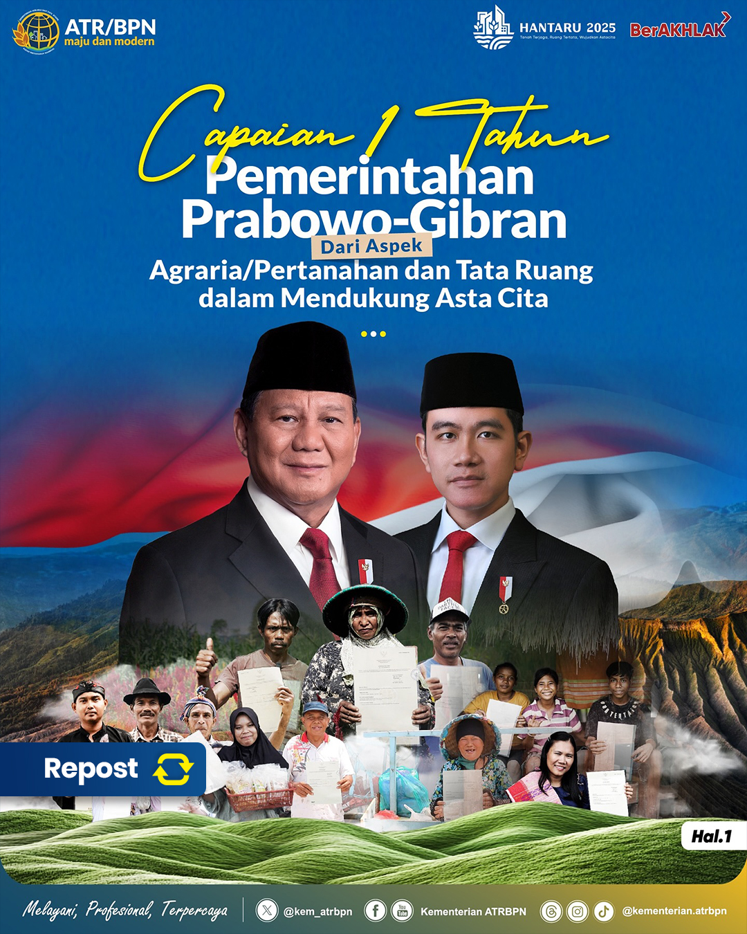 Halo #SobATRBPN, genap 1 tahun kepemimpinan Presiden RI, Prabowo Subianto beserta Wakil Presiden RI, Gibran Rakabuming mencatatkan sejumlah capaian kinerja positif.