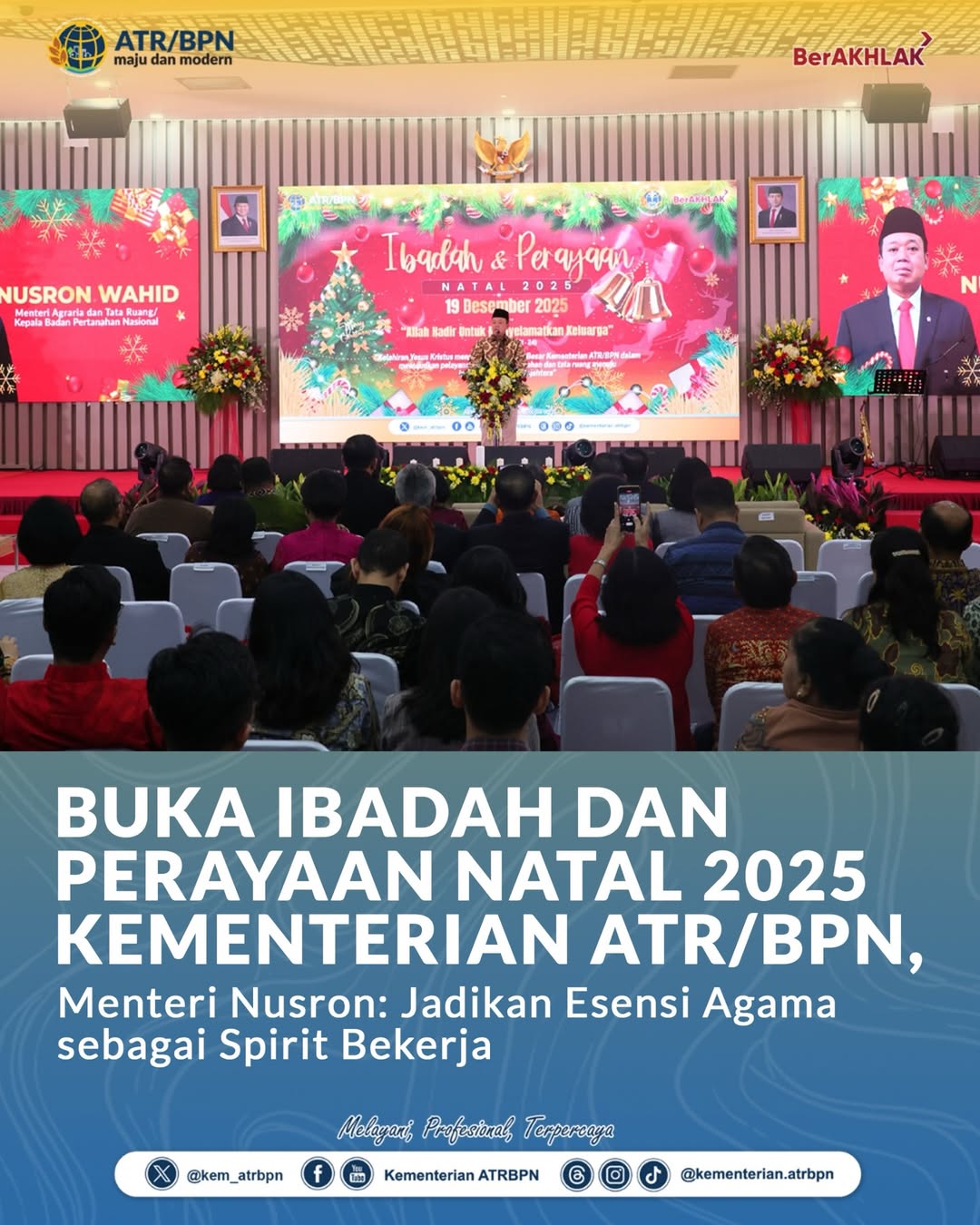 Buka Ibadah dan Perayaan Natal 2025 Kementerian ATR/BPN, Menteri Nusron: Jadikan Esensi Agama sebagai Spirit Bekerja