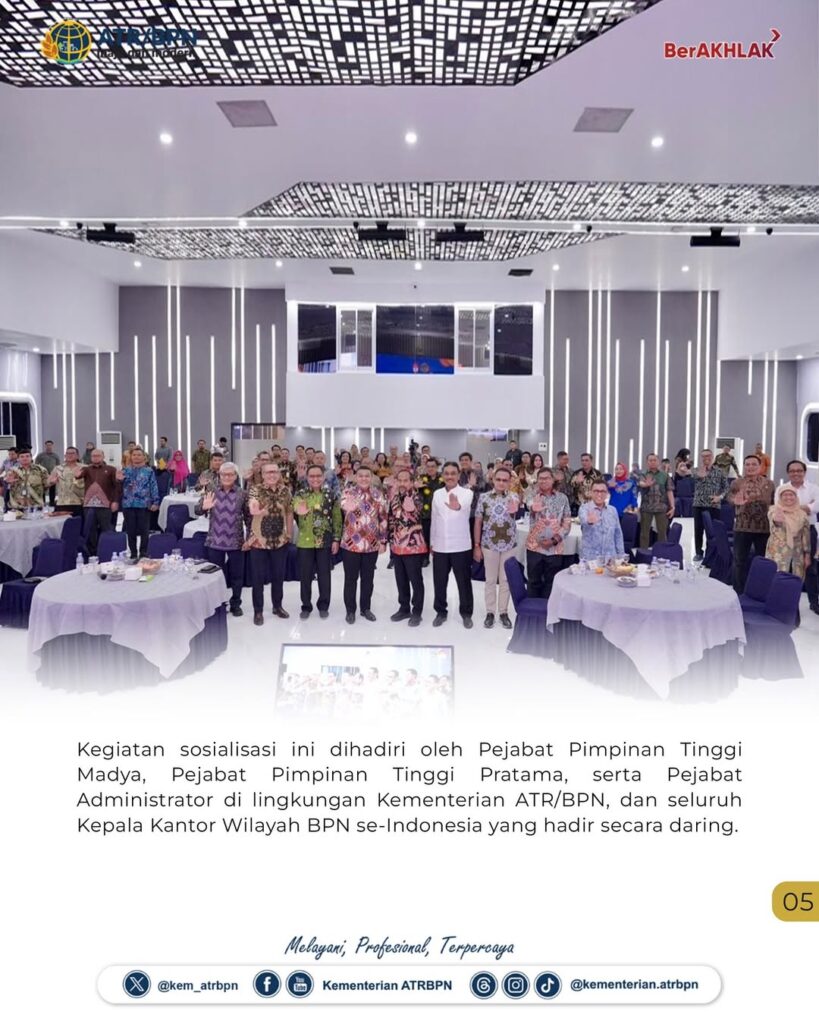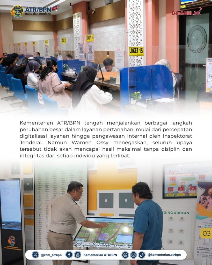 βIni tentunya tidak hanya menjadi kewajiban regulasi, tapi menjadi kebutuhan organisasi sesuai arahan yang disampaikan oleh Menteri Nusron, di mana 80% pekerjaan di Kementerian ATR/BPN adalah pelayanan publik,β ujar Wamen Ossy saat membuka kegiatan.