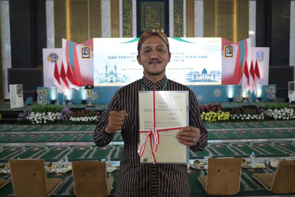 Proses pengurusan sertipikat yang mudah juga dirasakan oleh Lukman Hakim, penerima sertipikat wakaf produktif untuk persawahan produktif yang dimanfaatkan bagi kemakmuran masjid, musala, serta kegiatan keagamaan bagi warga Dusun Dawungan, Desa Gentong, Kabupaten Ngawi. “Ketika ada program percepatan sertipikasi wakaf ini, saya langsung mendaftar. Ini kesempatan yang sangat baik karena prosesnya cepat dan gratis. Saya merasa sangat terbantu,” tuturnya.
