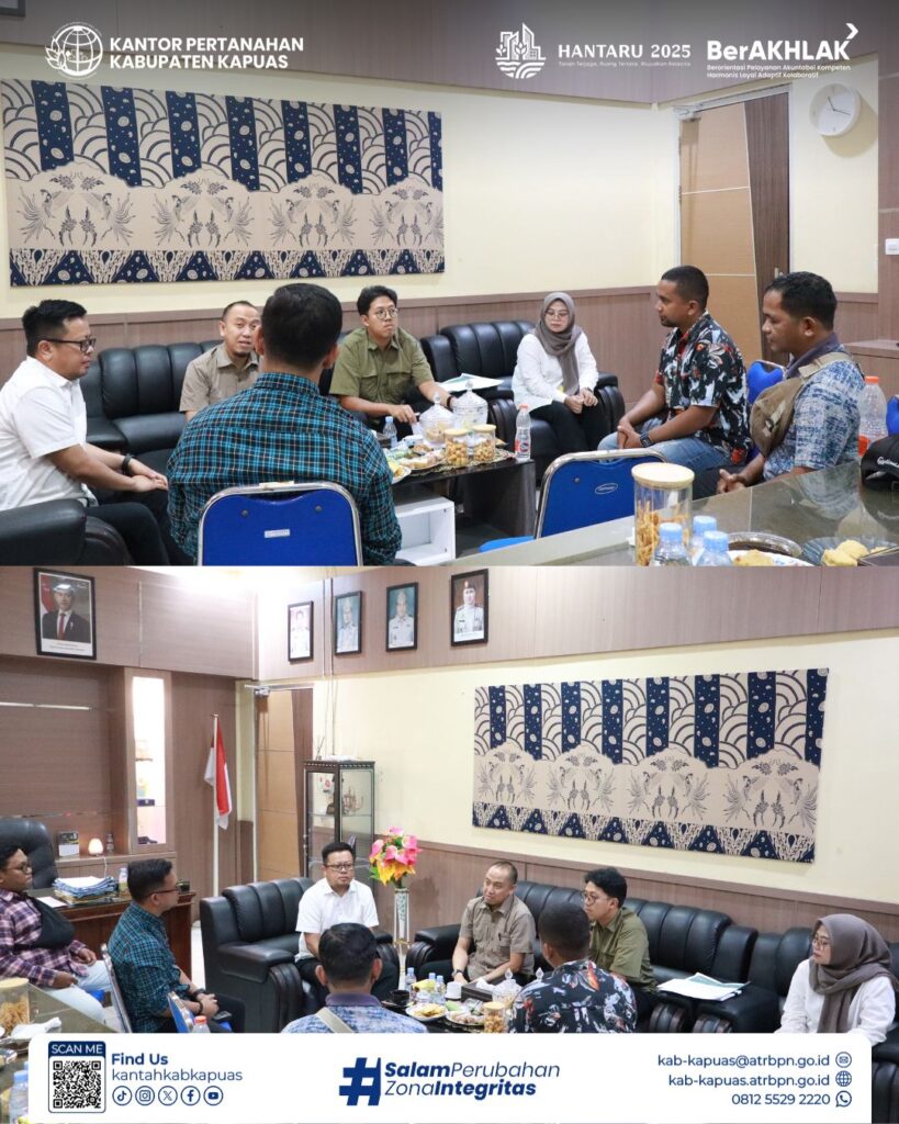 Kapuas – 12 November 2025 Kasubdit Penertiban Tanah Terlantar pada Dirjen Pengendalian dan Penertiban Tanah dan ruang Kementerian ATR/BPN melakukan kunjungan ke Kantor Pertanahan Kabupaten Kapuas.