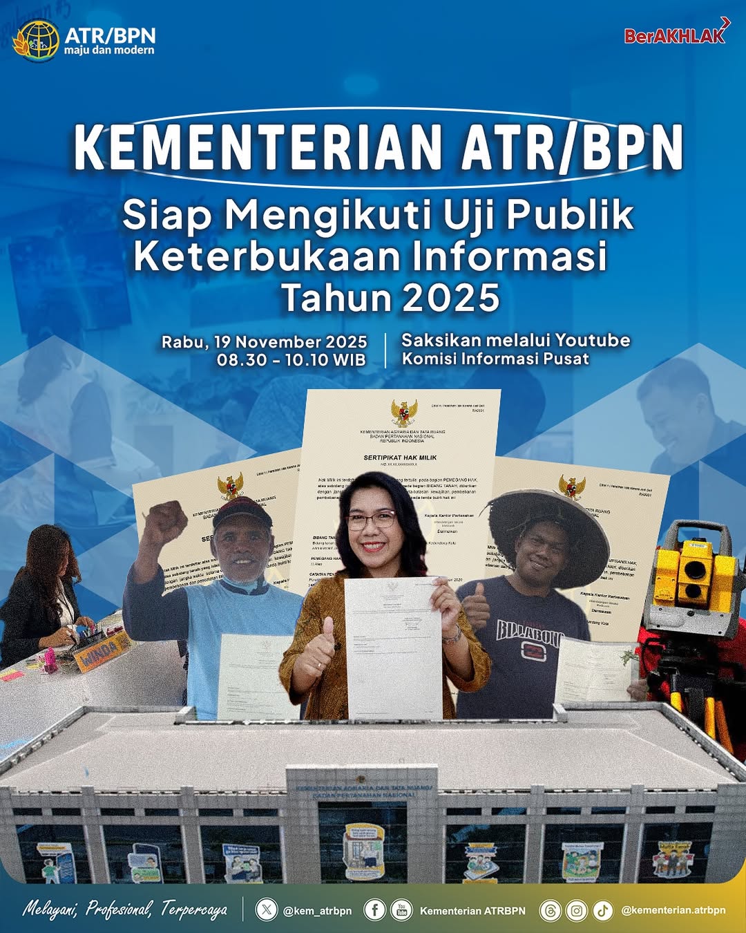 Halo #SobATRBPN, dalam rangka Monitoring dan Evaluasi oleh Komisi Informasi Pusat (KIP), Kementerian ATR/BPN siap mengikuti rangkaian Uji Publik Keterbukaan Informasi pada Rabu 19 November 2025.