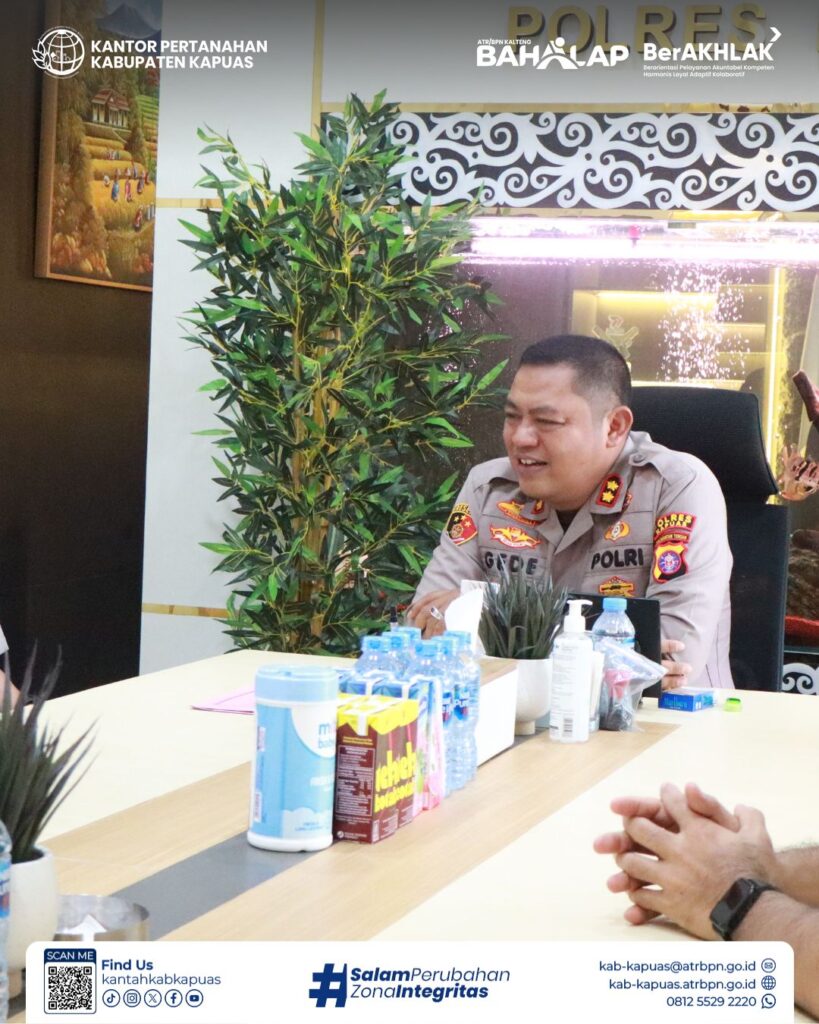 Dalam rangka mewujudkan kepastian hukum dan menyelesaikan berbagai persoalan pertanahan di wilayah Kabupaten Kapuas, Kantor Pertanahan Kabupaten Kapuas melakukan kunjungan koordinasi ke Kepolisian Resor (Polres) Kapuas pada Selasa, 27 Januari 2026.