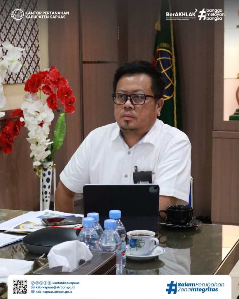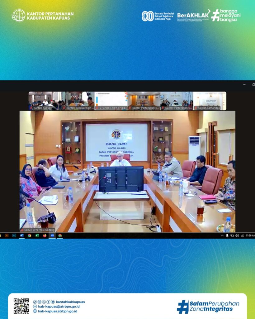 Kantor Pertanahan Kabupaten Kapuas mengikuti kegiatan Monitoring Evaluasi oleh Kantor Wilayah BPN Provinsi Kalimantan Tengah secara during melalui zoom.