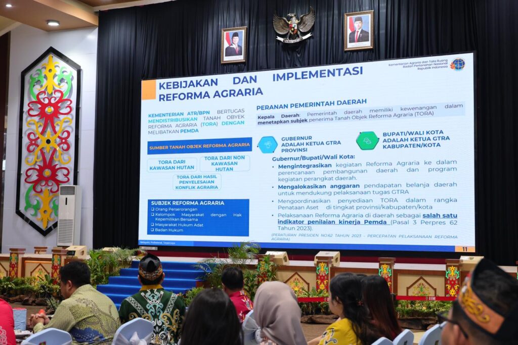 Di Kalteng sendiri, pelaksanaan Reforma Agraria tahun 2025 mencakup 10 kabupaten dan 1 kota, dengan sebaran program yang meliputi 26 kecamatan serta 38 desa dan kelurahan. Program Penataan Akses melalui fasilitasi pendampingan usaha diberikan kepada 800 kepala keluarga, sedangkan Penataan Aset berupa Redistribusi Tanah menjangkau 3.360 kepala keluarga. Seluruh target tersebut telah tercapai 100%.