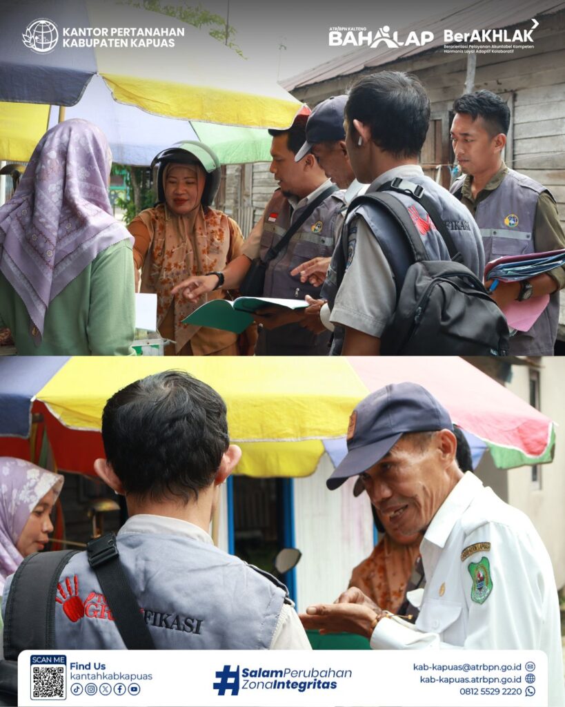Kantor Pertanahan Kabupaten Kapuas telah melaksanakan kegiatan pemeriksaan lapang panitia A yg berlokasi di Kelurahan Selat hulu, Kecamatan Selat Kabupaten Kapuas yang bertujuan untuk memverifikasi data fisik dan yuridis tanah secara langsung di lapangan untuk memastikan kesesuaiannya dengan dokumen permohonan, memeriksa batas-batas bidang tanah, dan memastikan tidak ada sengketa sebelum sertifikat hak atas tanah diterbitkan.
