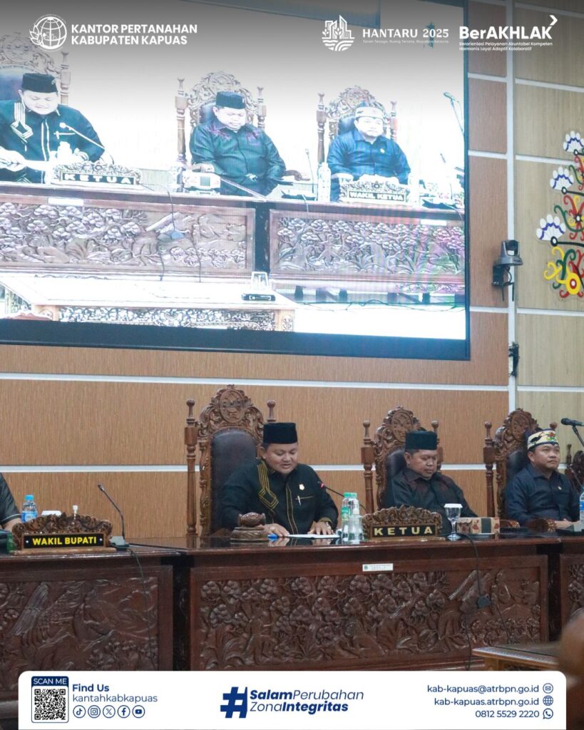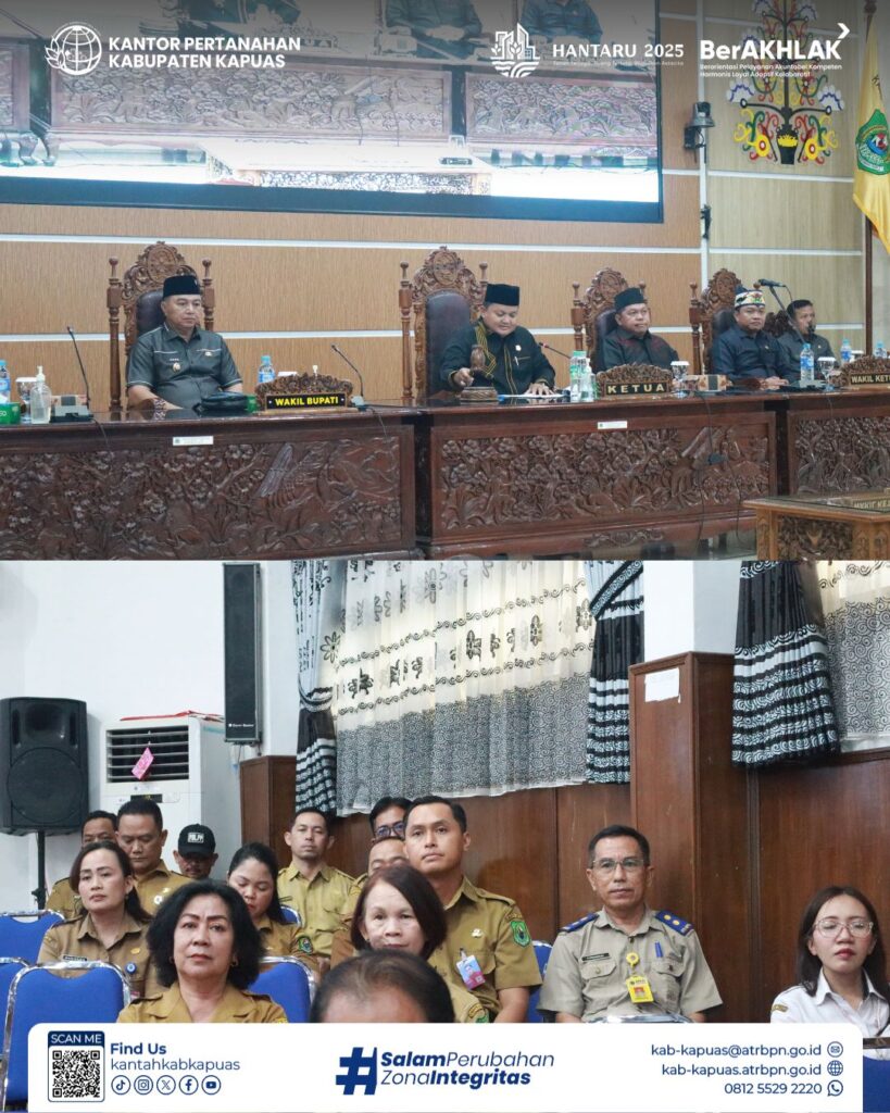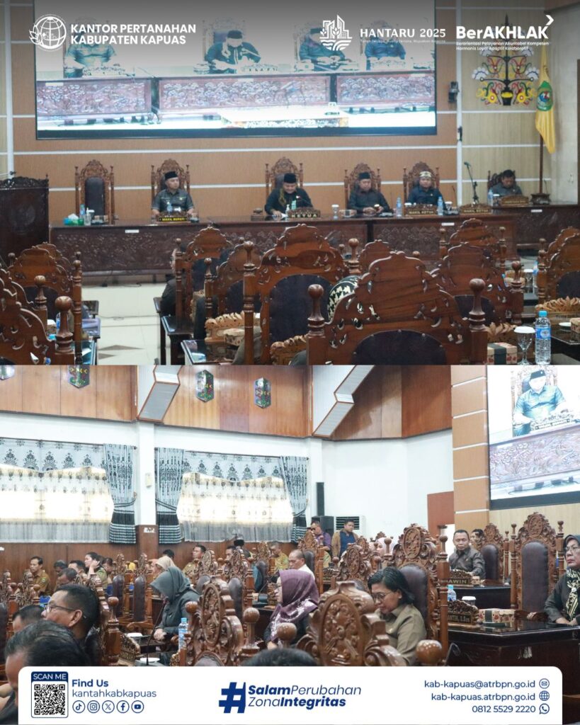 Kepala Kantor Pertanahan Kabupaten Kapuas diwakili oleh Kepala SubBagian Tata Usaha menghadiri undangan Penandatanganan Nota Kesepahaman KUA PPAS Tahun Anggaran 2026 bertempat di Ruang Rapat Paripurna DPRD Kabupaten Kapuas, Senin 20 Oktober 2025.