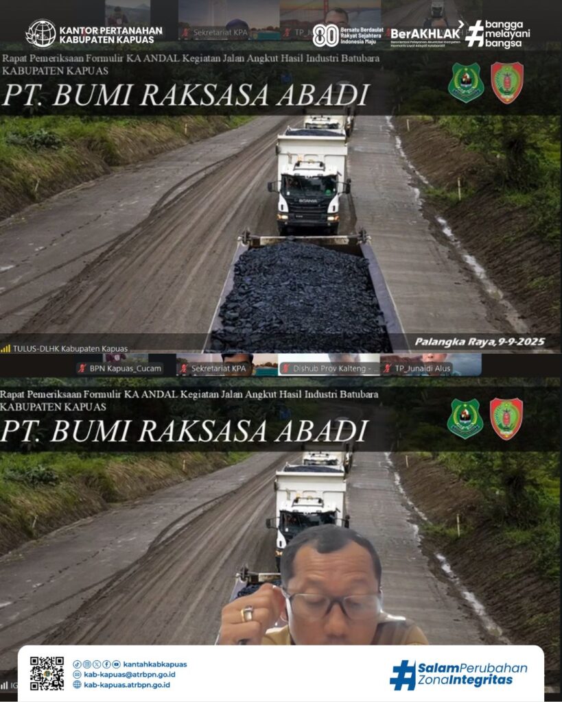 Rapat ini sebagai tindak lanjut Hasil Uji Administrasi penyampaian dokumen kerangka acuan rencana kegiatan jalan angkut hasil industri batu bara.