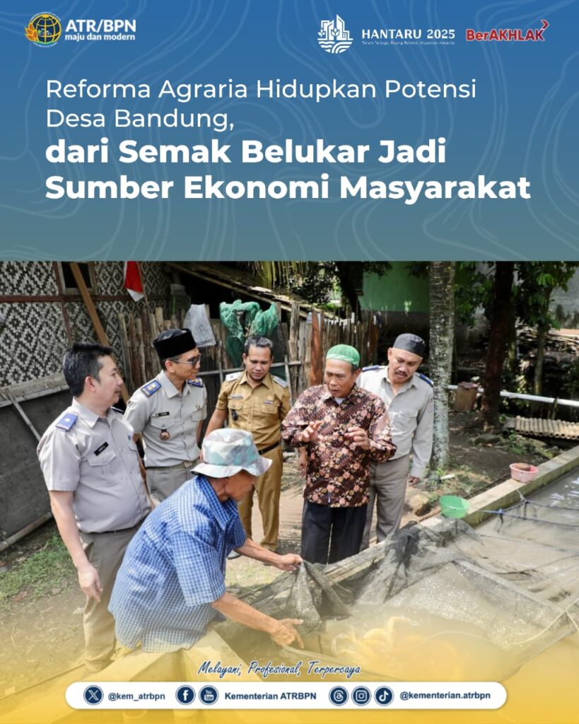 Pandeglang – Di Desa Bandung, Kabupaten Pandeglang, terdapat kampung yang dijuluki sebagai salah satu Kampung Reforma Agraria terbaik di Indonesia pada tahun 2025. Predikat dari Kementerian Dalam Negeri itu diberikan bukan tanpa alasan. Di desa ini, Reforma Agraria tak hanya menghadirkan sertipikat tanah, tapi juga membuka jalan menuju kebangkitan ekonomi, sosial, dan kualitas hidup masyarakat.