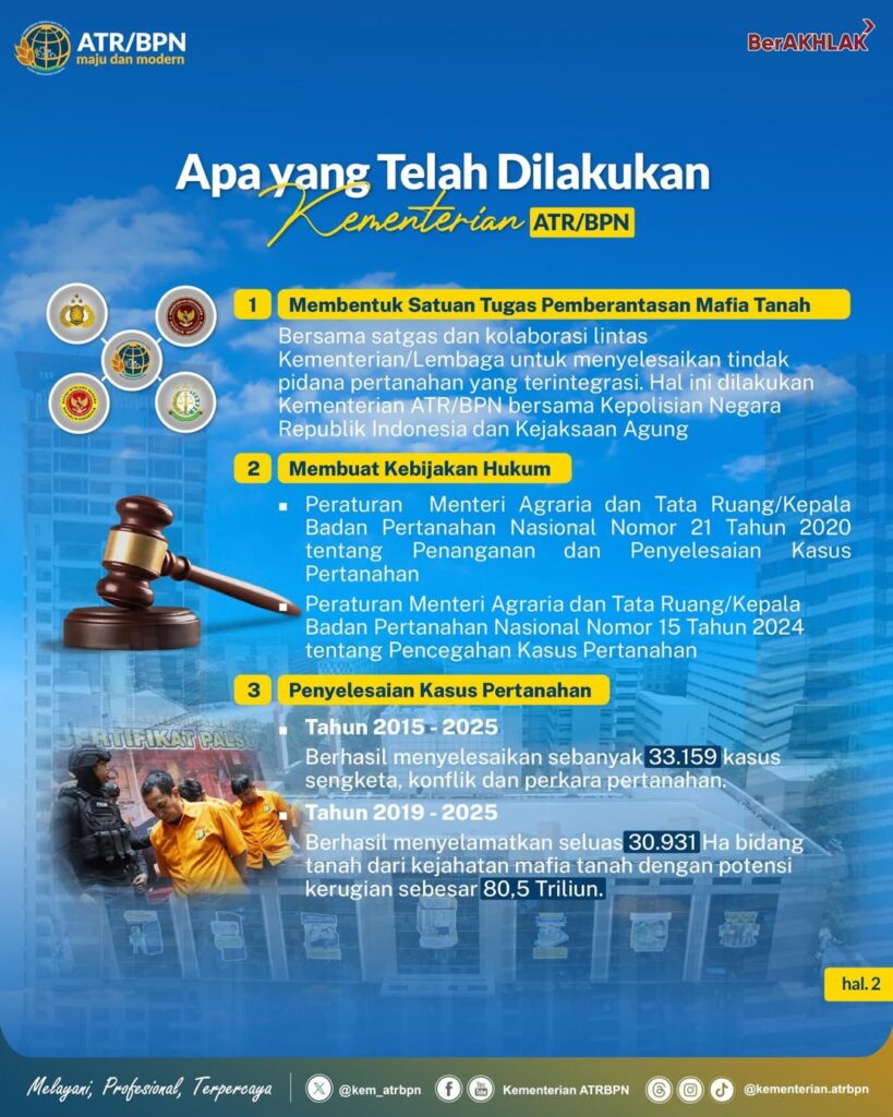 Lalu, sejauh mana upaya konkret yang telah dilakukan Kementerian ATR/BPN dalam memberantas praktik mafia tanah?
