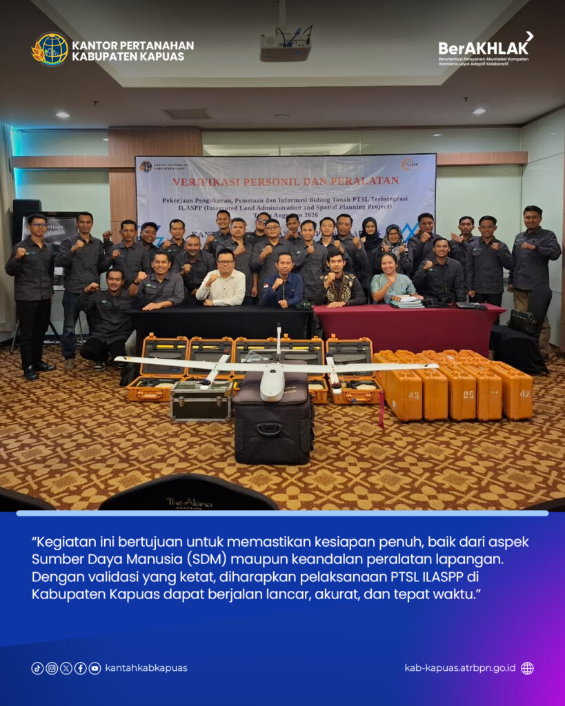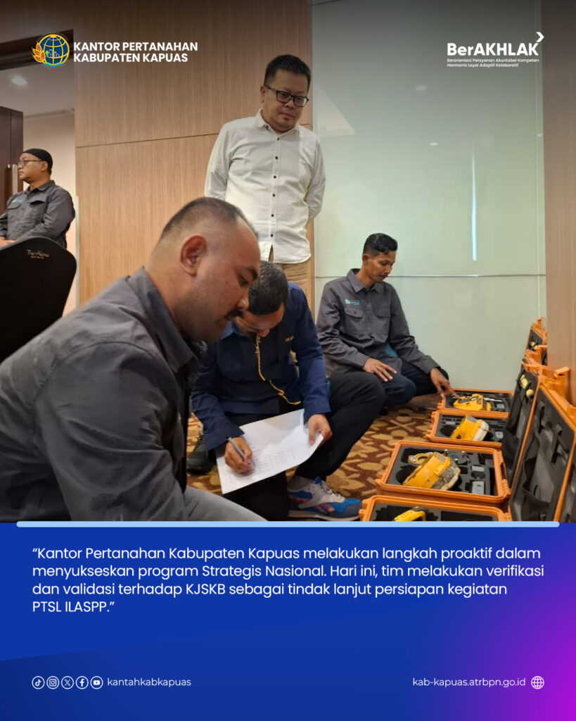 ​Kegiatan ini bertujuan untuk memastikan kesiapan penuh, baik dari aspek Sumber Daya Manusia (SDM) maupun keandalan peralatan lapangan. Dengan validasi yang ketat, diharapkan pelaksanaan PTSL ILASPP di Kabupaten Kapuas dapat berjalan lancar, akurat, dan tepat waktu.